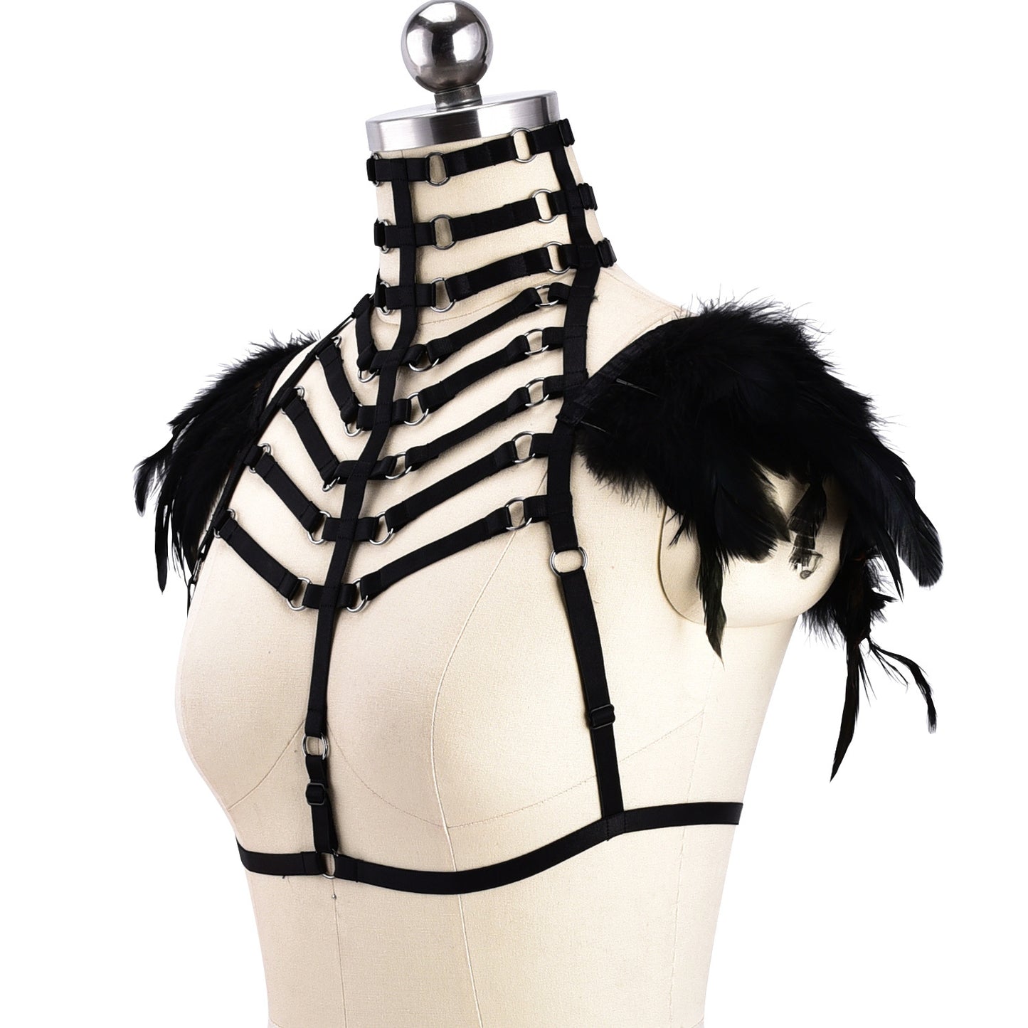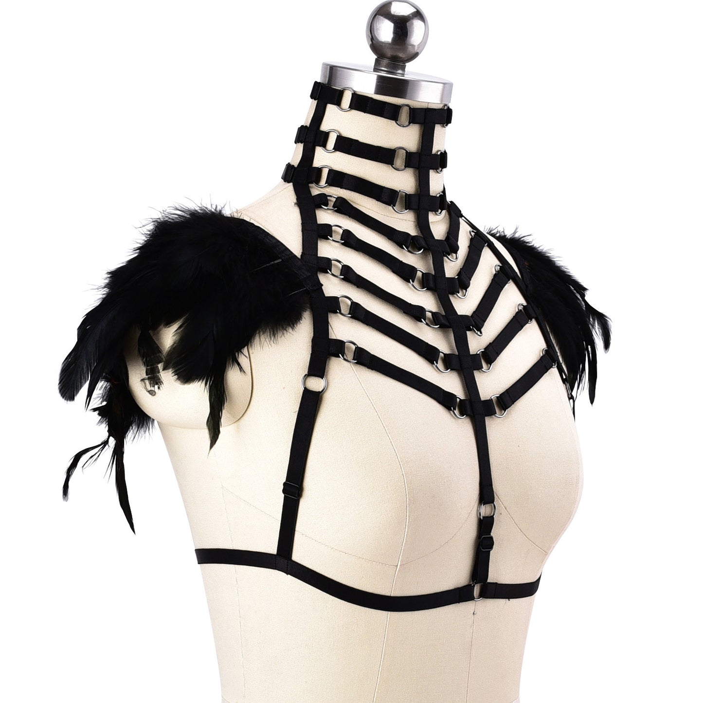 Chubby Bra for Sexy Submissive Black Body Harness Lingerie Feather Bra